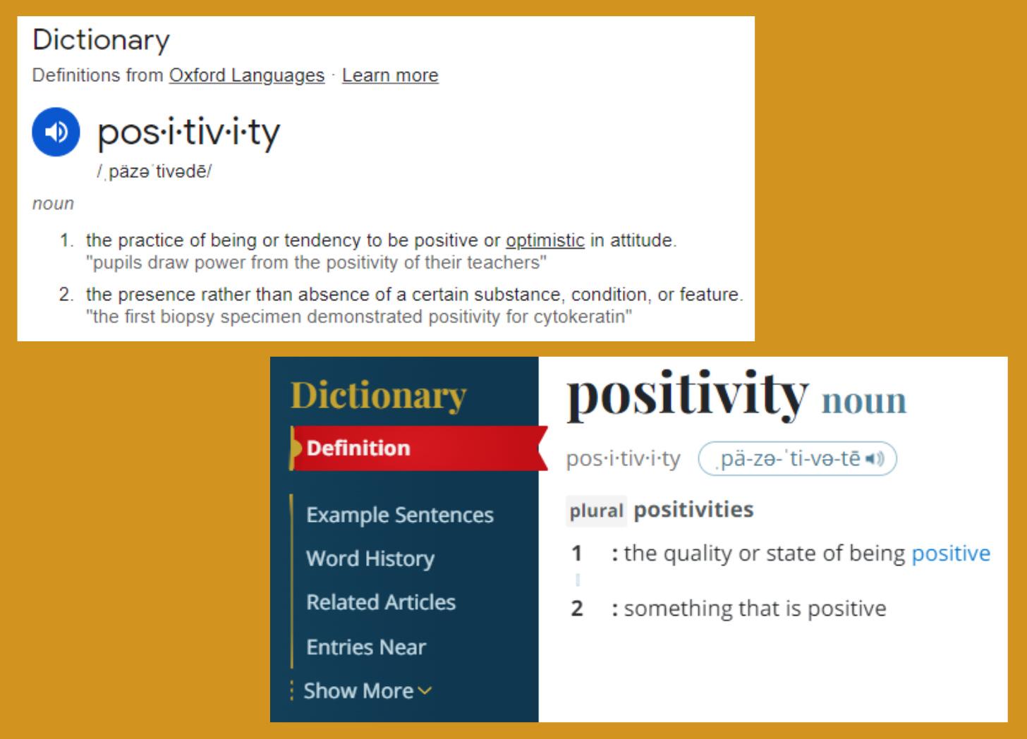 Per current “on-line” dictionary sources, positivity has two definitions.